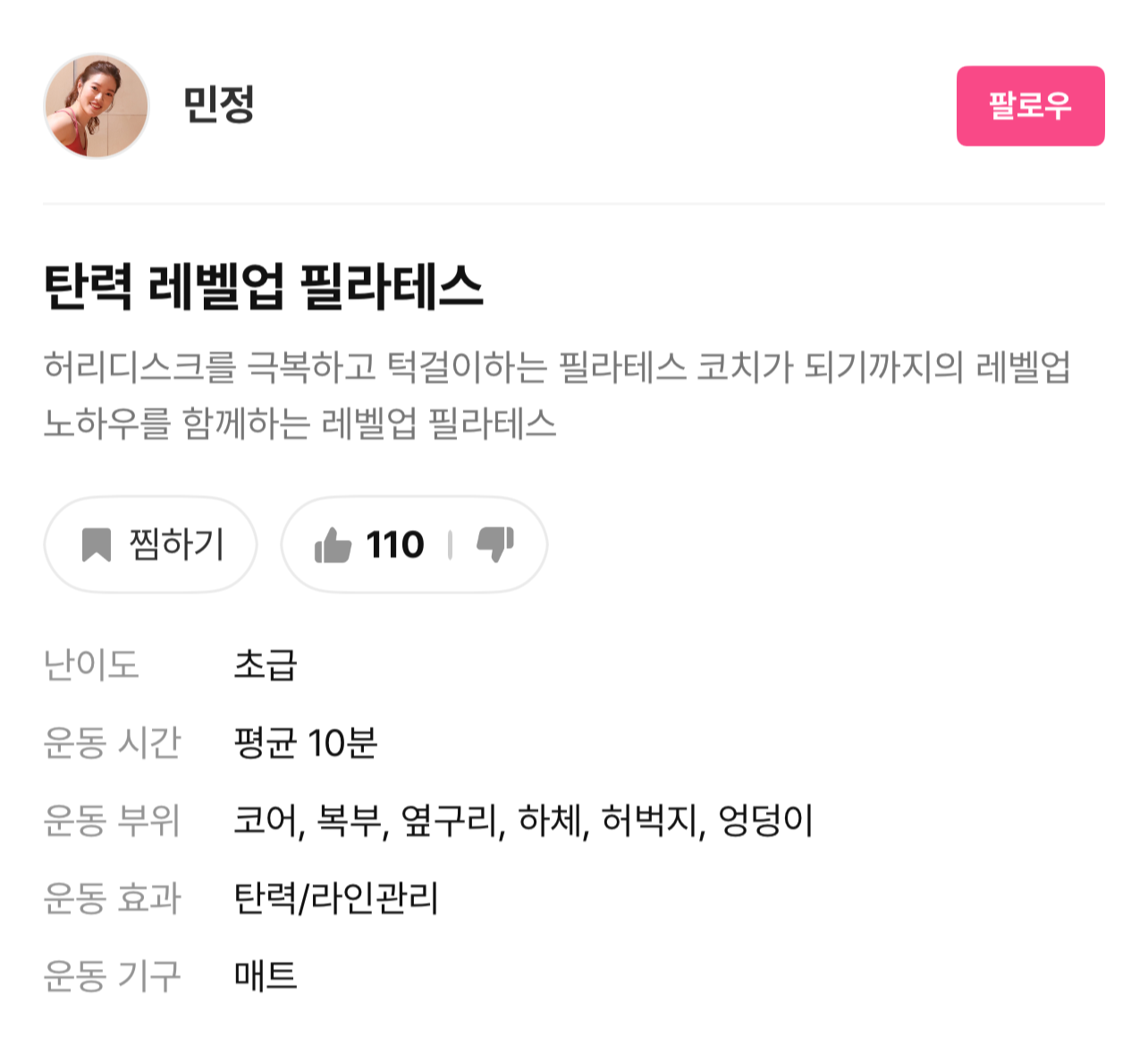 민정 코치 운동을 접하고 처음에는 오늘의 운동(추천)이랑 같이 병행을 했다